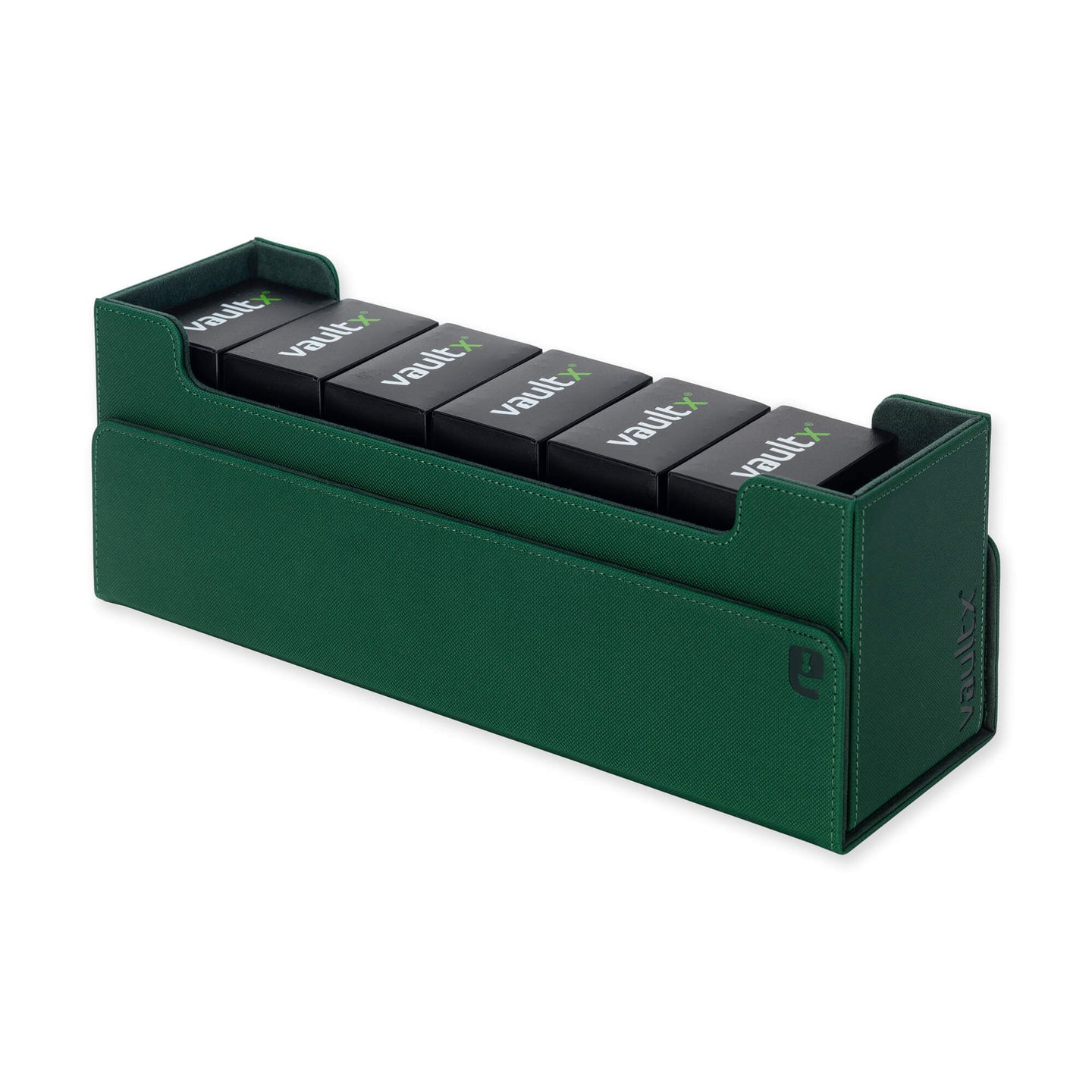 The Vault X Card Box is designed to fit a variety of trading cards and Vault X products. Holds 1000+ raw cards, 450+ sleeved cards, 180 toploaders, 40 magnetic card holders and standard and side-loading deck boxes. Dividers and foam spacers keep your collection organised and secured.